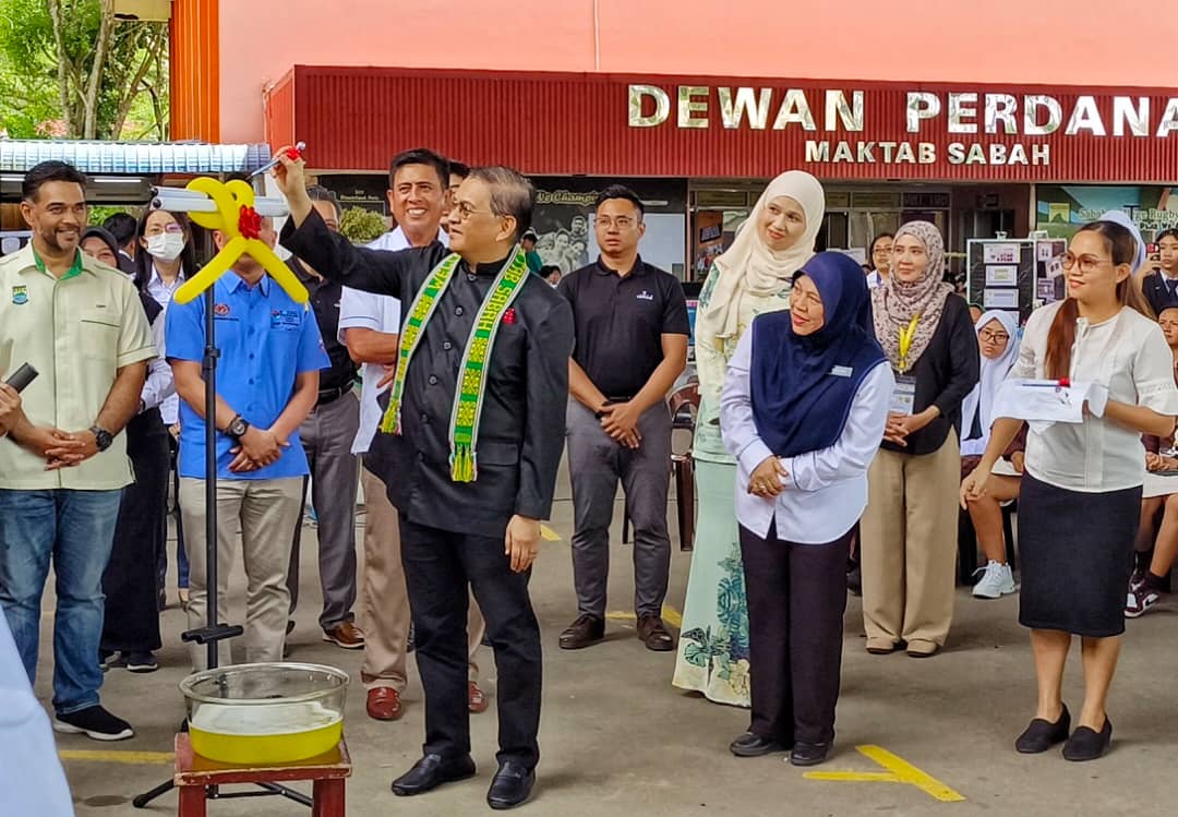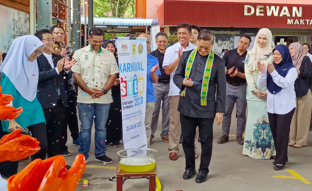 25 Julai 2023- YB Datuk Dr Haji Arifin bin Datuk Haji Arif (JP), Menteri Sains, Teknologi dan Inovasi Sabah diringi Musleha Khairunisa Binti Muluk, Ketua Penolong Setiausaha Kanan KSTI hadir pada Majlis Penutupan Karnival STEM Peringkat Sekolah Menegah di Maktab Sabah.