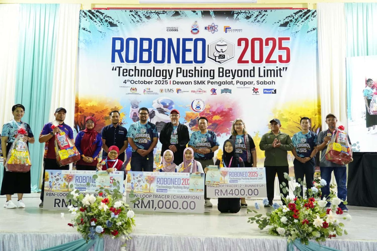 Setiausaha Tetap Kementerian Sains, Teknologi dan Inovasi (KSTI) Sabah, YBhg. Tuan Hassan bin Mahali, telah menyempurnakan Majlis Perasmian Penutupan Roboneo 2025 “Technology Pushing Beyond Limit” yang telah diadakan di Dewan Sekolah Menengah Kebangsaan Pengalat, Papar, Sabah Ahad lalu.