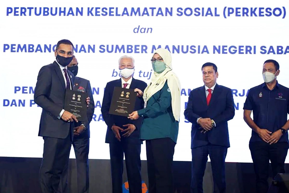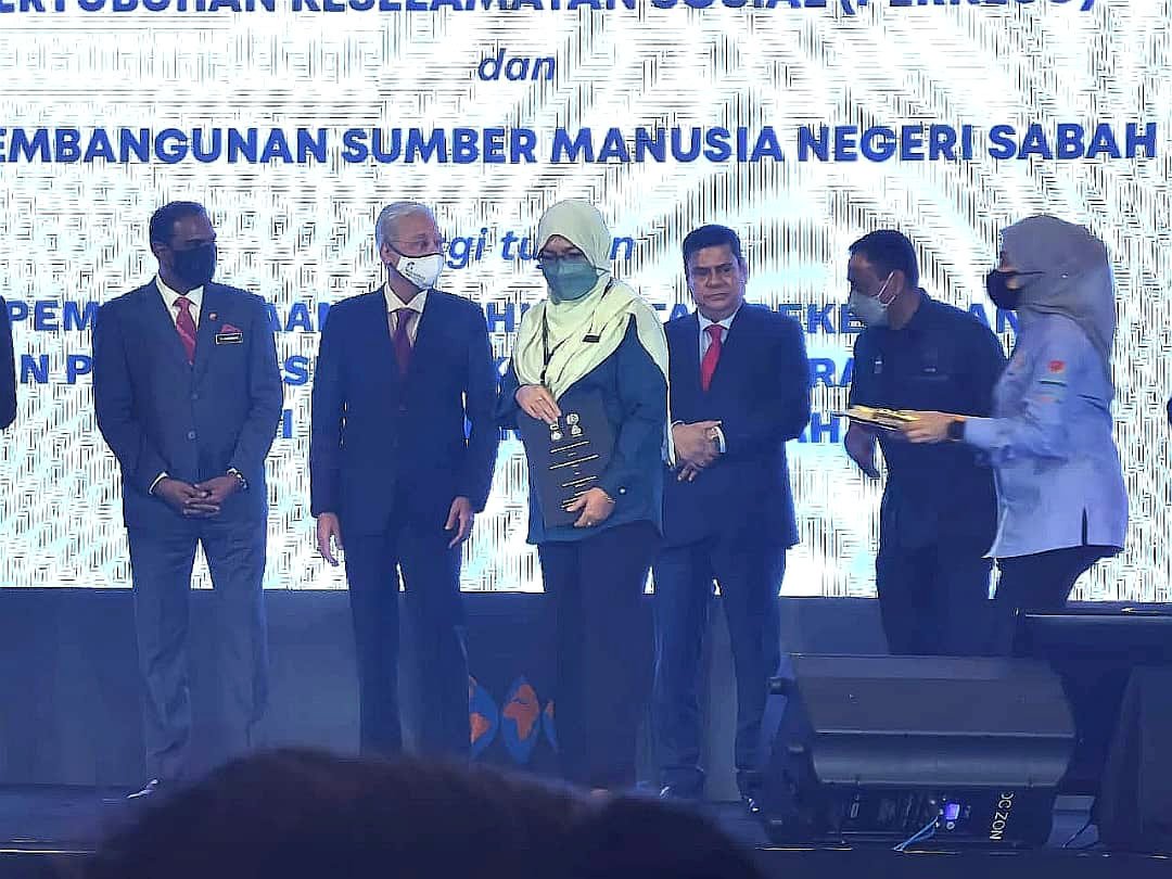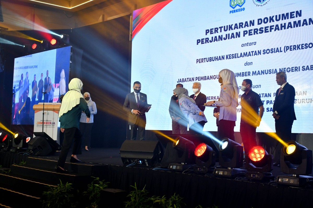 Kuala Lumpur 25 Julai 2022 - Majlis Pelancaran Ekspo Kerjaya JaminKerja Keluarga Malaysia dan Pemeteraian Memoradum Persefahanan (MoU) antara Pertubuhan Keselamatan Sosial (PERKESO) dan Jabatan Pembangunan Sumber Manusia (JPSM), di Pusat Dagangan Dunia Kuala Lumpur (WTCKL). Majlis telah disaksikan oleh YAB Perdana Menteri Dato' Sri Ismail Sabri Bin Yaakob. Kementerian Sains, Teknologi dan Inovasi Sabah