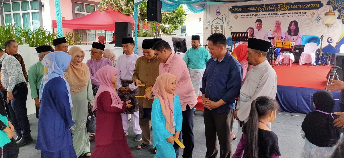 6 Mei 2023 - Majlis Rumah Terbuka YBM Datuk Dr Haji Mohd Arifin bin Datuk Haji Mohd. Arif(JP), Menteri Sains, Teknologi dan Inovasi Sabah di kediaman keluarga di Kampung Pimping Membakut. YB Menteri turut menyampaikan sumbangan kepada 150 orang anak yatim dan asnaf semasa majlis.