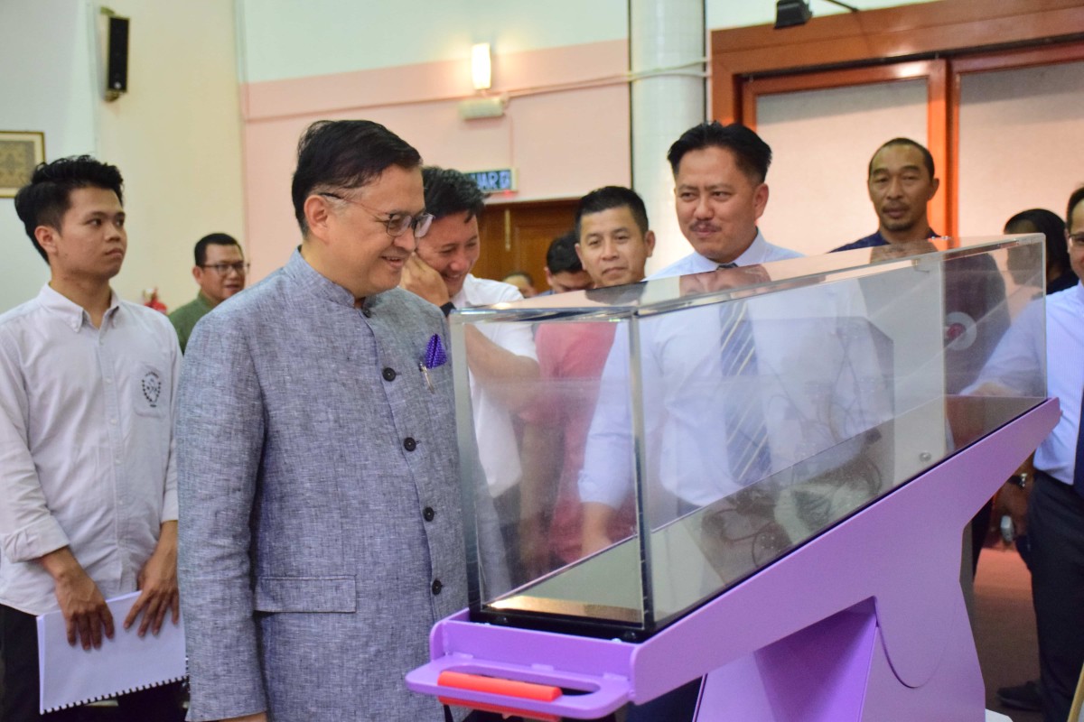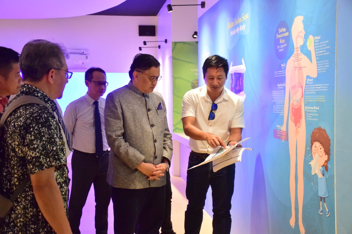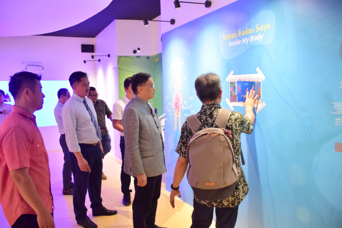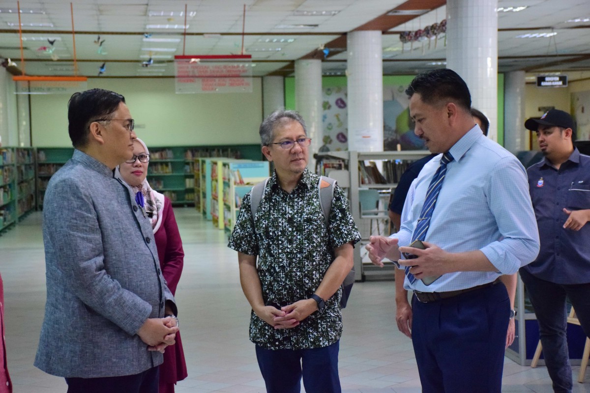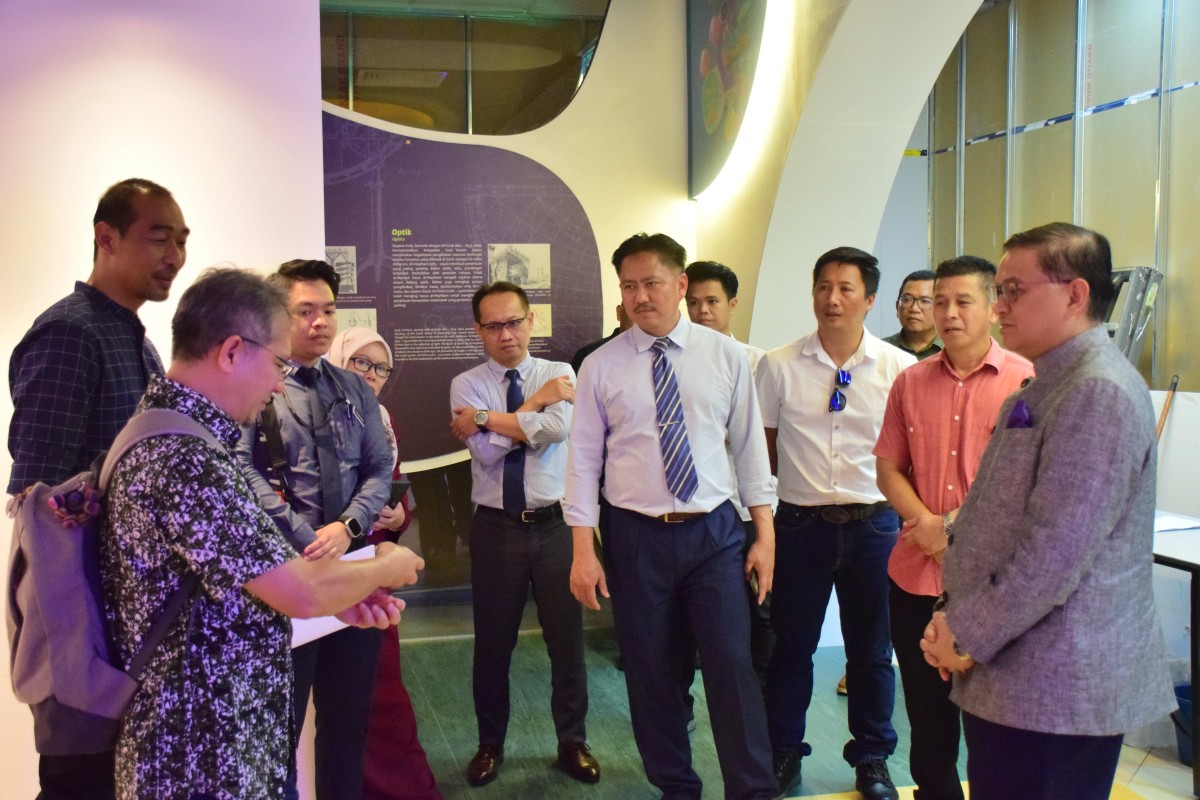 Kota Kinabalu 22 Jun 2023- YB Datuk Dr Hj Mohd Arifin Bin Datuk Hj Mohd Arif Menteri Sains, Teknologi dan Inovasi Sabah bersama Setiausaha Tetap Kementerian ,Datuk Zainudin bin Aman melawat Pusat Sains di Perpustakaan Negeri Sabah Cawangan Keningau