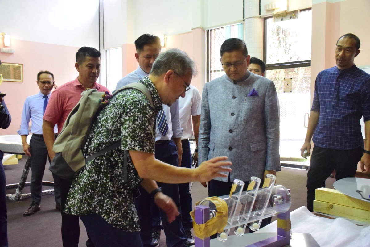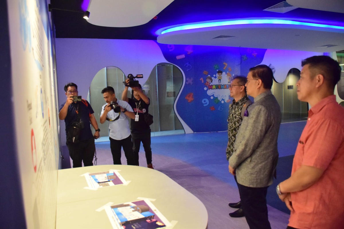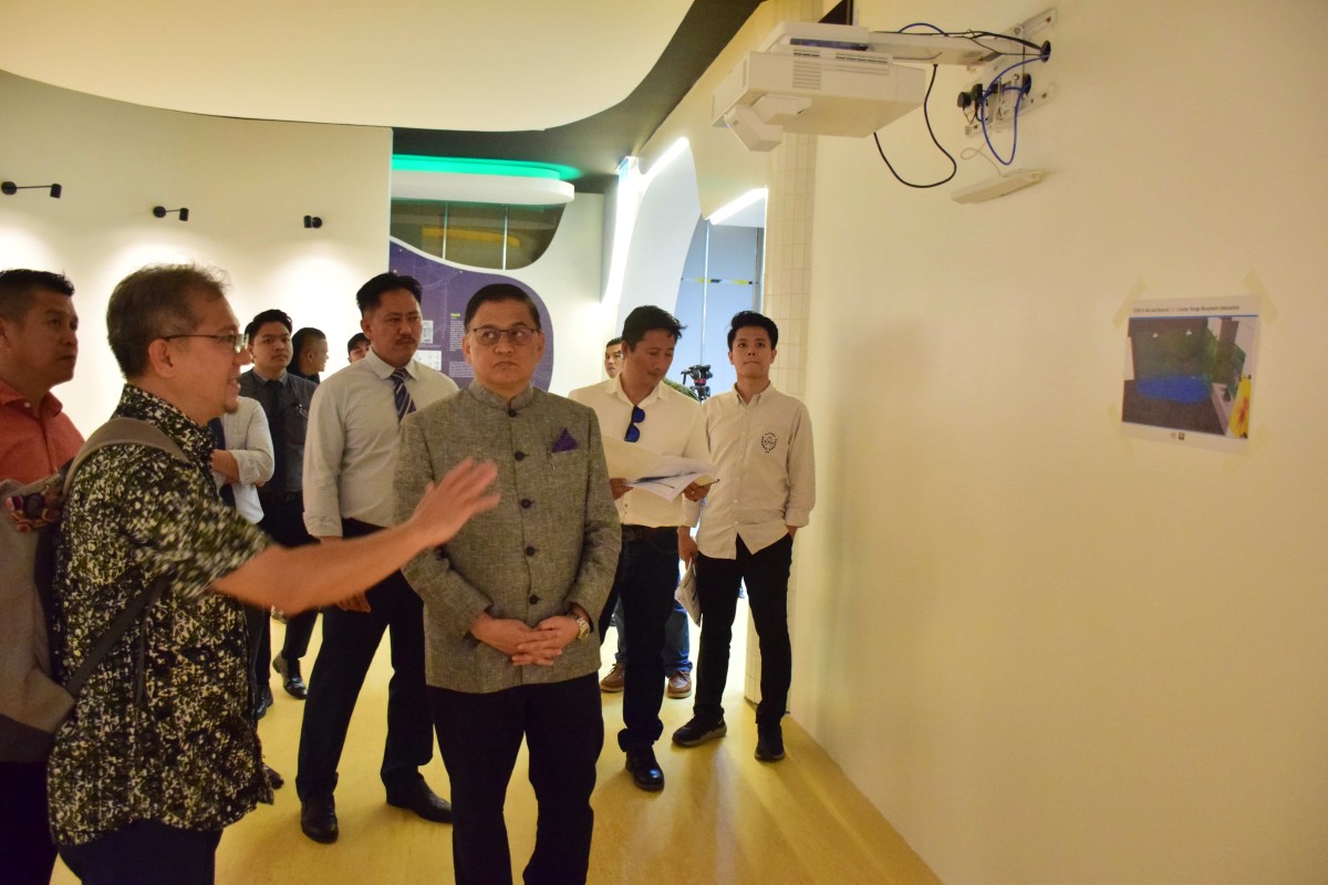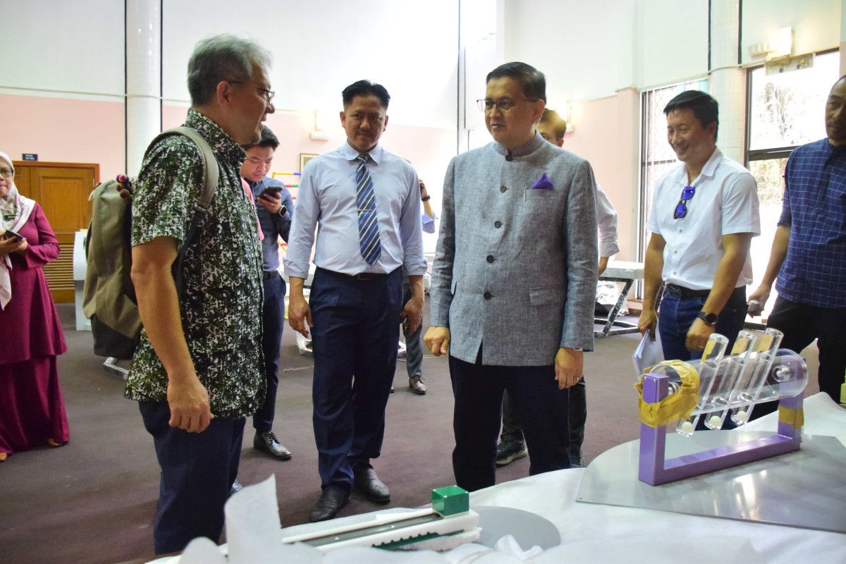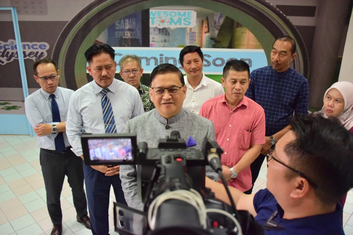 YB Datuk Dr Hj Mohd Arifin Bin Datuk Hj Mohd Arif Menteri Sains, Teknologi dan Inovasi Sabah bersama Setiausaha Tetap Kementerian ,Datuk Zainudin bin Aman melawat Pusat Sains di Perpustakaan Negeri Sabah Cawangan Keningau