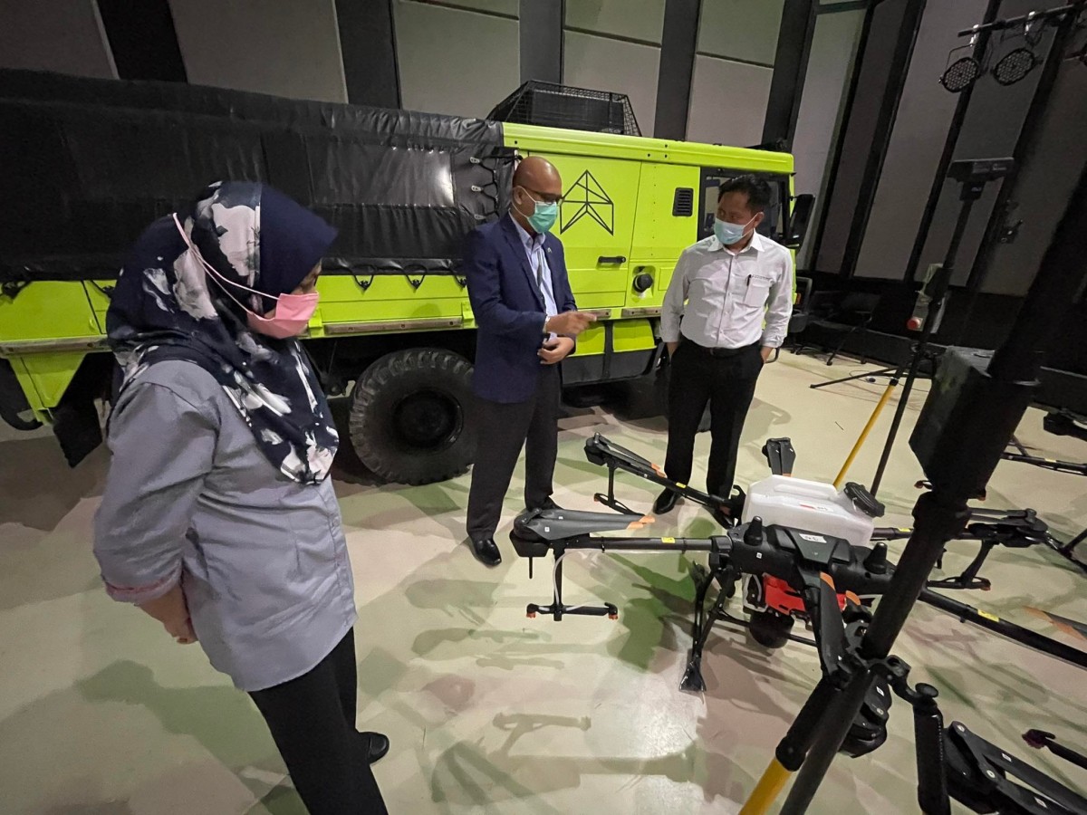 KOTA KINABALU 17 November 2021 - Lawatan rasmi Setiausaha Tetap Kementerian Sains Teknologi dan Inovasi Sabah ke syarikat pengeluar dron terbesar di dunia (Aerodyne Group) pada pagi ini.