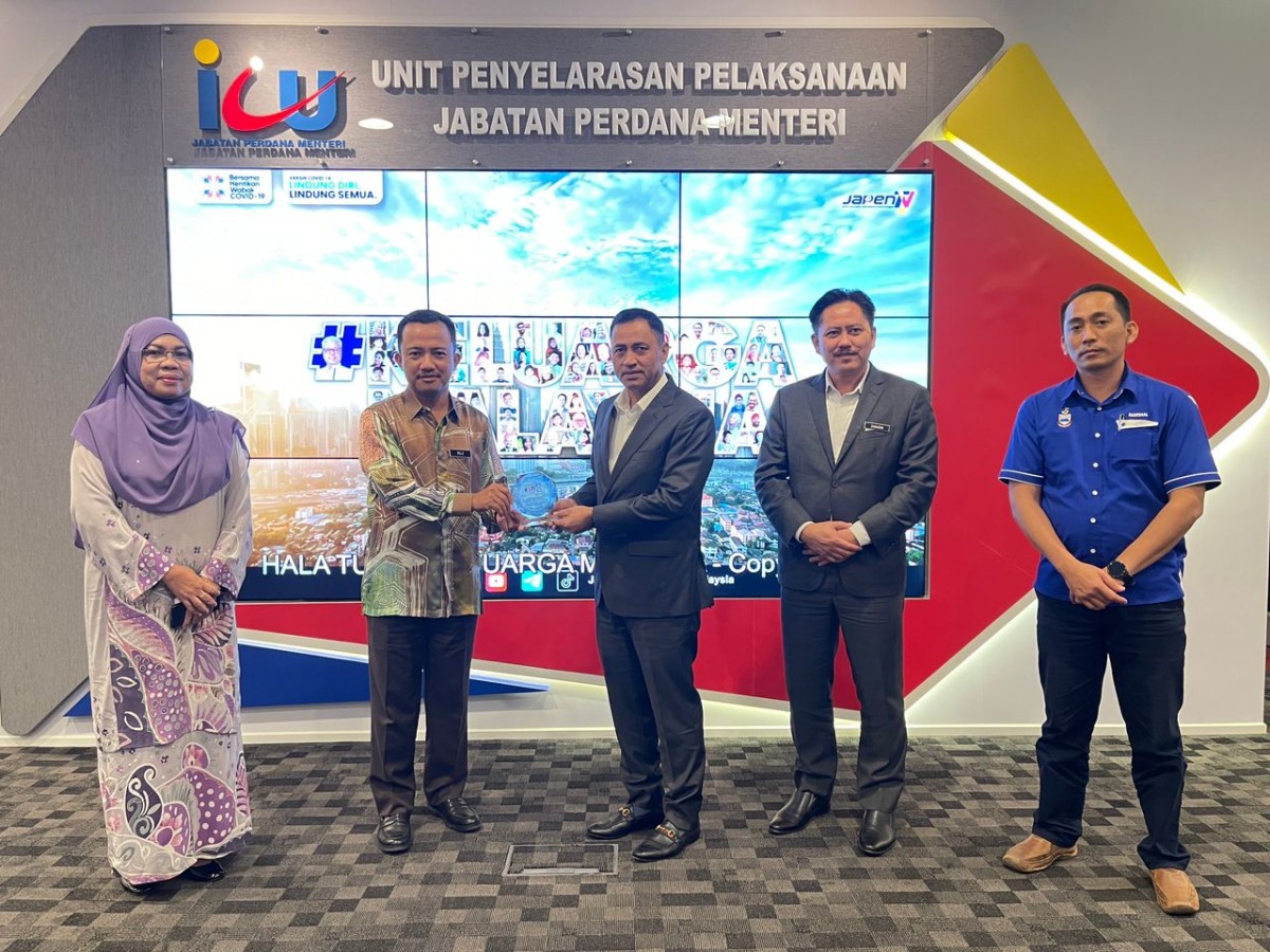 KOTA KINABALU 16 Disember 2021 – Kunjungan hormat rombongan YB Datuk Haji Yakub Khan, Menteri Kementerian Sains, Teknologi dan Inovasi Sabah (KSTI) bersama Tuan Haji Zainudin bin Aman, Setiausaha Tetap KSTI dan Puan Tianinun Binti Iping, Pengarah JPSM ke Unit Penyelarasan Pelaksanaan (ICU JPM) di Putrajaya.