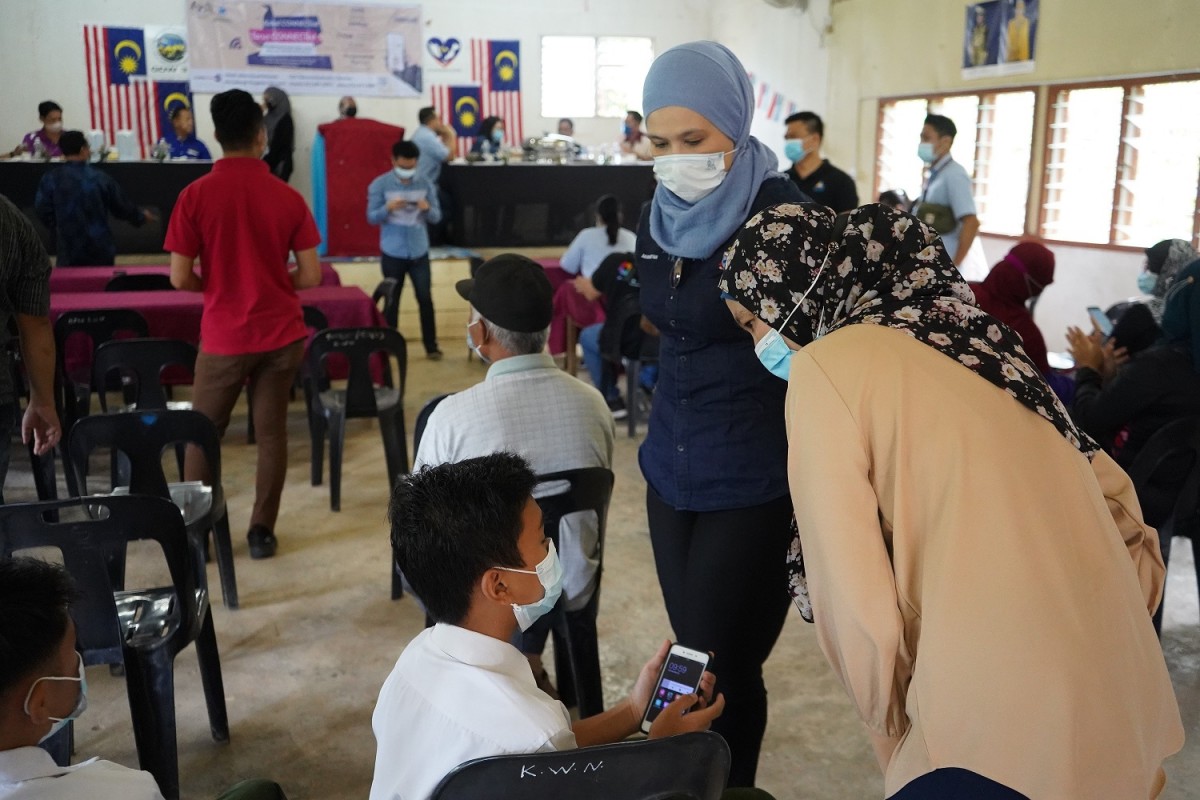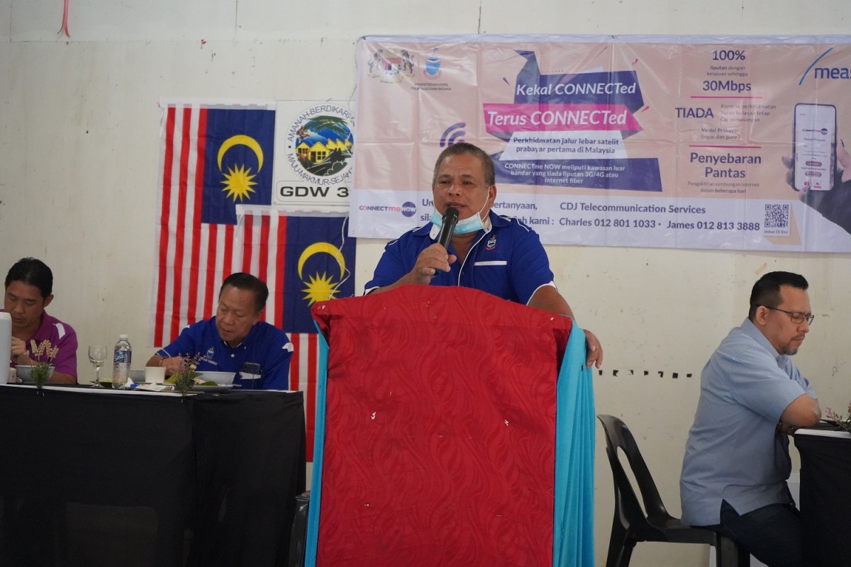 KOTA KINABALU, 6 Mac 2021 - Lawatan Yang Berhormat Datuk Haji Yakub Khan Menteri Sains Teknologi dan Inovasi Sabah ke Kampung Kumawanan Tambunan Bagi Majlis Pelancaran dan Penyampaian Simkad ConnectMeNow MEASAT.