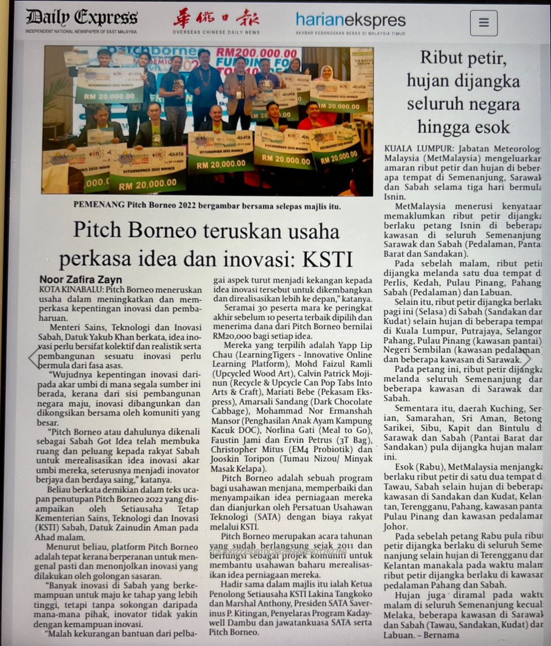 DailyExpress : Pitch Borneo teruskan Usaha Perkasa idea dan inovasi: KSTI